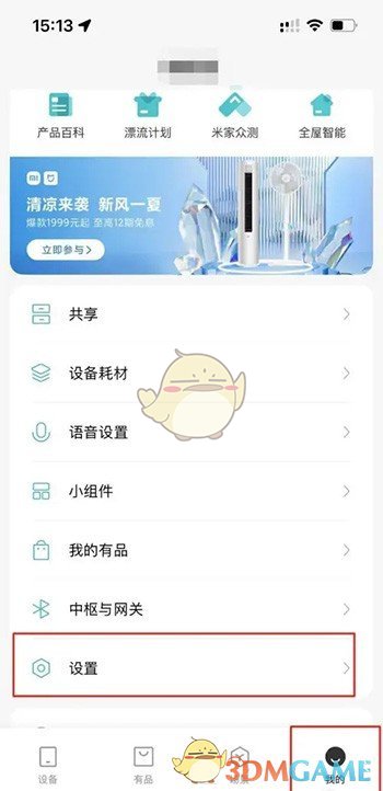 1、打开米家APP,点击页面右下角的[我的],然后选择[设置]。