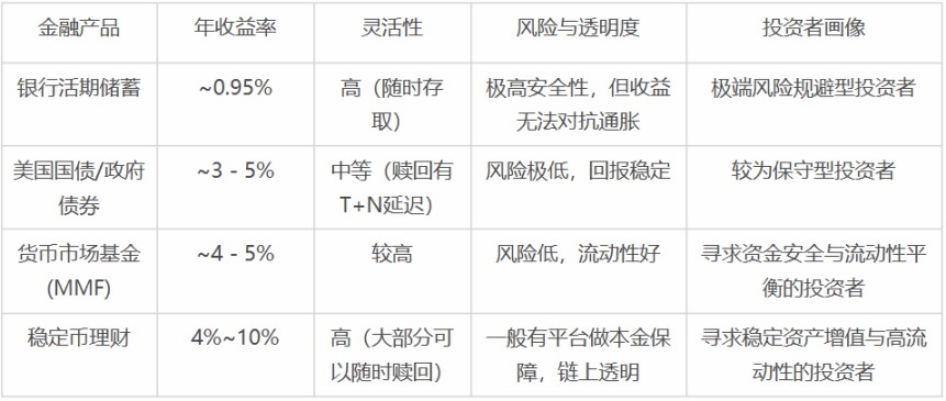 在厘清其底层逻辑之后,稳定币理财的市场定位便愈发清晰。它精准地切中了当前低利率环境下投资者的核心痛点,即通过投资与美元锚定的稳定币,让持有者既能有效规避比特币、以太坊等主流资产的价格剧烈波动,又能获取远超传统渠道的稳健回报。