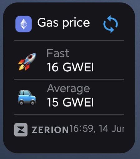 Zerion是许多有接触Defi的人常用来管理钱包的实用工具,可以用来管理多个链上钱包上的资产,除了可以在上面直接进行Swap、发送、接收、跨桥等实用功能,还能用来追踪大户钱包的动作,而其中也有内建的查询Gas功能,甚至还有桌面小工具,无论是Android或是iOS 用户都能在桌面放置,随时查看Gas,但缺点是数据更新不如其他方法及时,会有分钟级别的延迟。