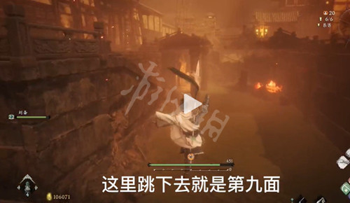 9、返回之后再跳下去,前面右转出门,一路上的兵都是要清掉的,跳下就能看到旗帜了。
