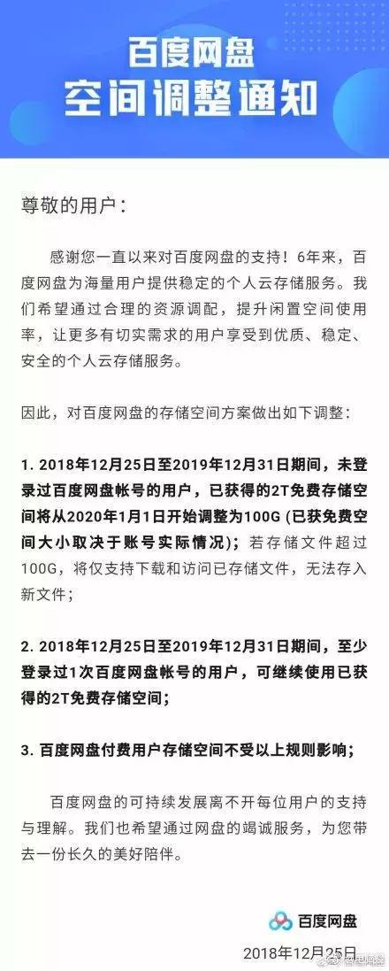 • 百度网盘新规:不登录用户网盘容量缩水至100GB
